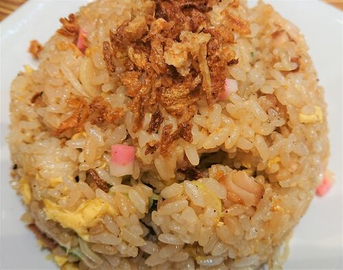 K七です。 『れんげ食堂TOSHU』に行ったときに、 焦がしにんにくマー油チャーハン を食べました。 チップが山頂にonしてます。 アップ焦がしにんにくマー油チャーハン。 具材は、玉子、ネギ、なると、チャーシューです。 今日もごちそうさま。 お腹いっぱい…